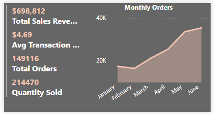 In the area chart, we populate the X-axis with transaction_date from the Transactions table and the Y-axis with the Total Orders measure. Since the dataset is based on roughly half a year, we retained a monthly breakdown.
